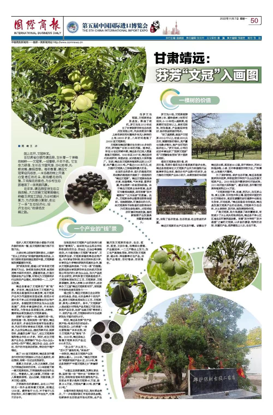 白银市利用第五届中国国际进口博览会平台提升“靖远文冠果”品牌知名度