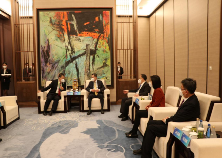 11月5日,副市长冯汉颋带队与韩国三星物产大中华区董事长郑皓永以及三星物产人力资源部、风控部、管理部等相关负责人对接交流,介绍了靖远文冠果“黄金油”、文冠果养生茶等产品特点,借力参展外商扩大我市文冠果产品“朋友圈”,助力走向全国、奔向世界。