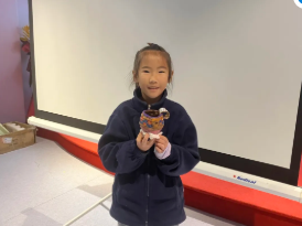 老师讲得精彩,孩子们听得认真,时不时还有互动,答对问题的孩子都有小小的奖励。通过PPT,孩子们了解了仰韶文化时期的船型彩陶壶寓意——酒像船下的水一样饮之不尽;大汶口文化时期的猪形陶鬶(guī)反映出新石器时代先民将实用性与艺术性完美融合;龙山文化时期的黑陶罍(léi)更是将盛、斟、饮功能融于一身;马家窑文化时期的十字纹双联彩陶罐的独特造型。