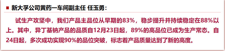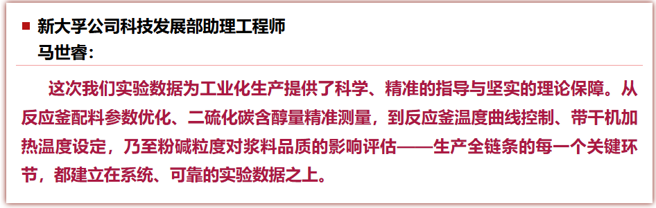 在绿色选矿药剂项目试生产的攻坚阶段,新大孚公司聚焦生产全链条效能提升,以工艺优化为核心、以数据驱动为支撑、以团队协同为保障,持续打磨生产流程、固化关键参数,破解运营瓶颈。2025年11月5日至12月30日,干部职工近两个月驻厂攻坚,通过优化反应釜温控参数与精准原料配比,黄药一车间单线日产量从原有6–8吨提升至12吨以上;成功攻关回流二硫化碳含醇量检测技术,首次实现对该关键指标的精准测量,使得原料配比实现从“经验调整”到“数据驱动”的跨越,彻底告别了靠经验调整配比的过往。