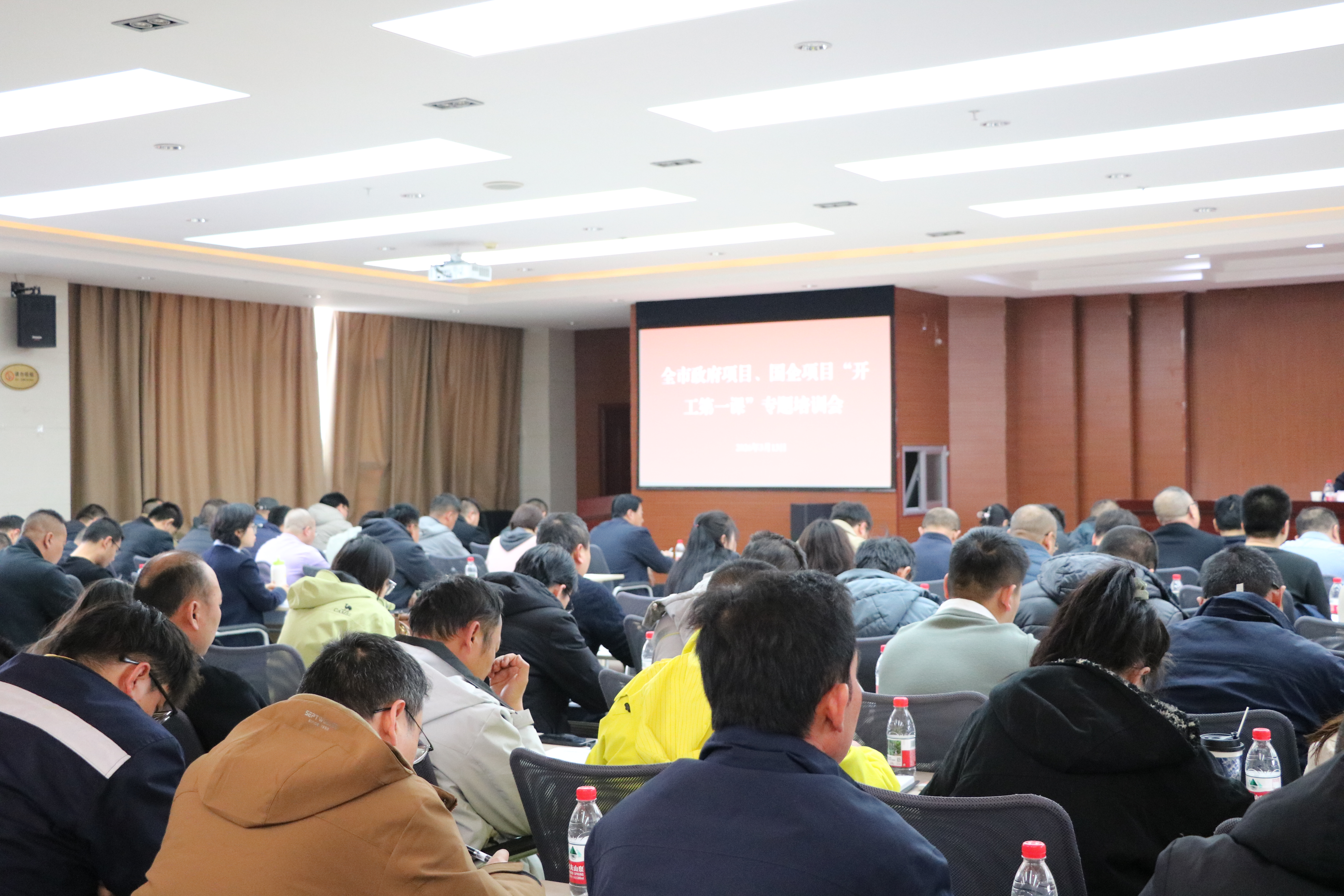 春潮涌动启新程,项目建设正当时。当前,全市重点项目抢抓春季施工黄金期,全面提速推进。为从源头筑牢农民工工资支付保障防线,3月13日,市人社局召开全市政府项目、国企项目“开工第一课”专题培训会,项目建设、施工单位负责人、劳资专管员近200人参加培训,市人社局将政策宣讲送到项目一线,为工程建设平稳推进装上“安全锁”。