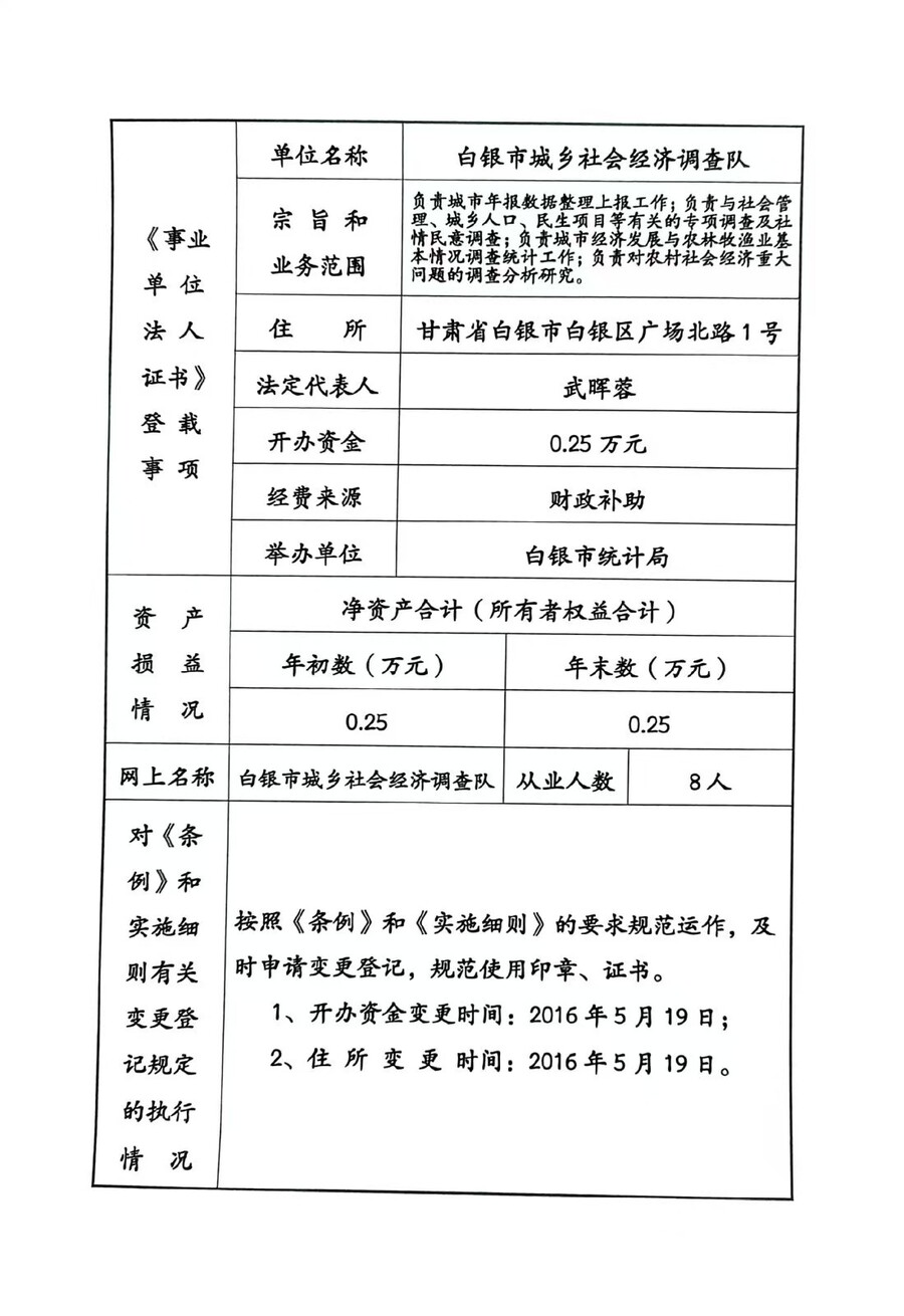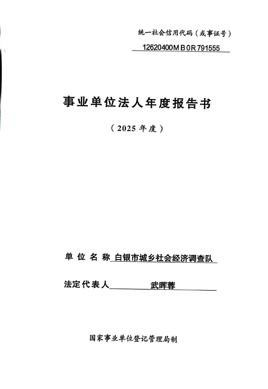 白银市城乡社会经济调查队事业单位法人年度报告书(2025年度)