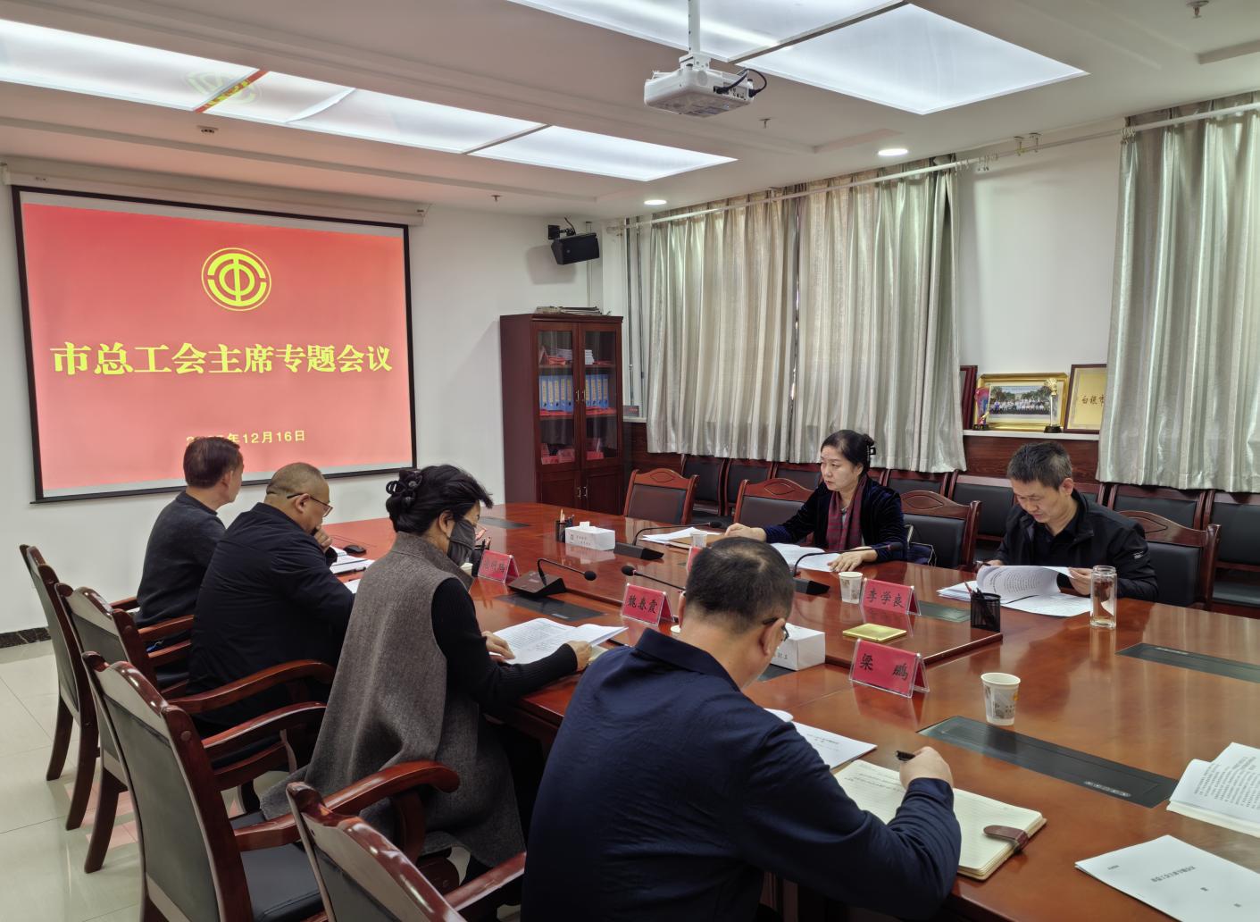 12月16日下午,市总工会召开主席专题会议,传达学习习近平总书记在中央经济工作会议、12月8日在中央政治局会议上的重要讲话精神,传达学习市政府与市总工会第十三次联席会议精神,研究贯彻落实意见,安排部署近期工作。