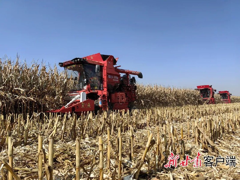 机械化籽粒直收现场观摩测产会在甘肃农垦集团条山农场举办。图由省农科院提供