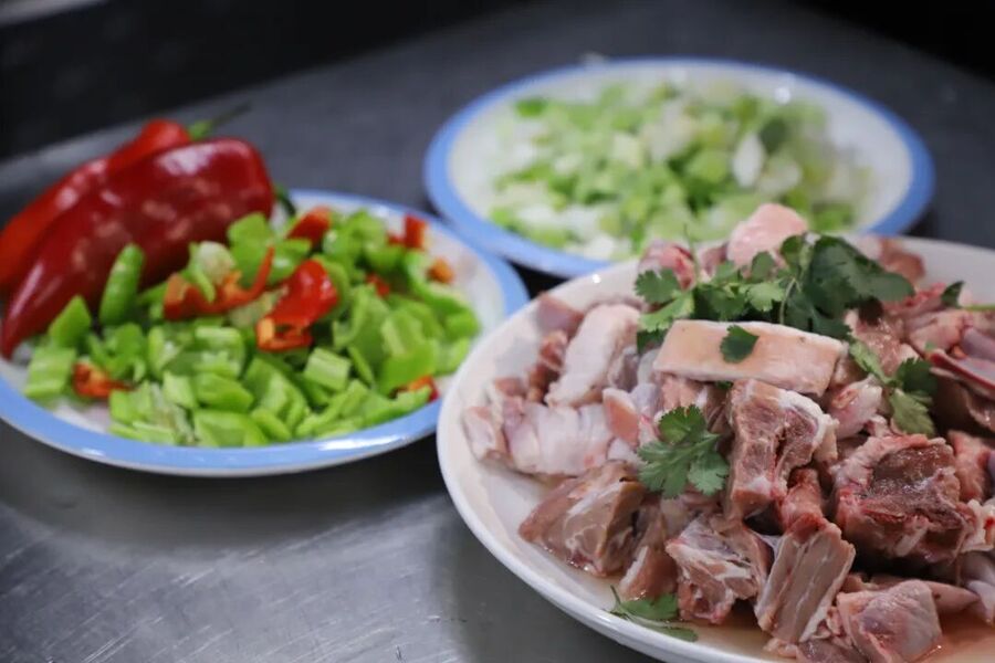 选料是靖远羊羔肉风味的根基,严苛标准源自当地独特的养殖条件。靖远地处黄河灌区,水草丰美且富含矿物质,羊羔以天然牧草和黄河沿岸作物秸秆为食。制作时精选3-6月龄的滩羊或山羊羔羊,体重控制在 15—20斤,这个阶段的羊羔肉质最为细嫩,脂肪分布均匀。选材需避开腥膻味较重的部位,优先选用带骨的肋条、腿肉等,确保烹饪后口感醇厚。