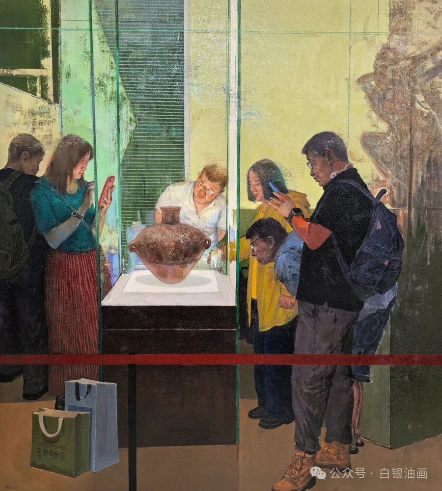 此次白银入选的6件作品,兼具思想深度与艺术张力。李源的《凝视千年文明之彩陶》《秦韵母亲河》,将千年文脉与黄河风情融入笔墨;曾兰雯的《绿松石絮语》《夏日序曲》,以细腻笔触勾勒自然与诗意;席博文的《铜城像·2》《那里的我们·1》,用写实手法定格白银记忆与人文温度。值得一提的是,画家李源凭借此次优异表现,已具备加入中国油画学会会员资格(申报中),彰显了白银油画创作的强劲实力。