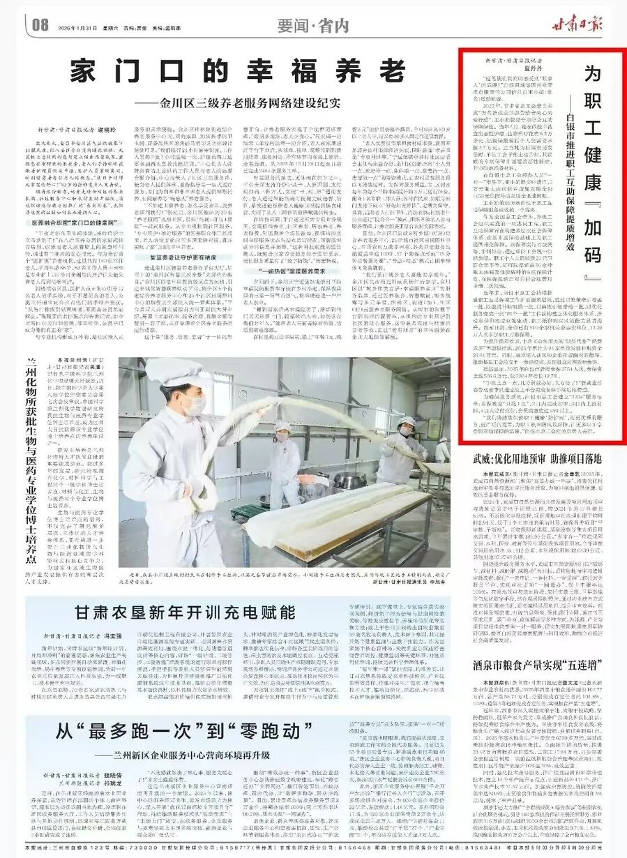 1月31日,《甘肃日报》报道,白银市总工会持续推进职工互助保障工作扩面提质增效,截至目前,全市已有510余家机关企事业单位、12.39万人次参加职工互助保障。