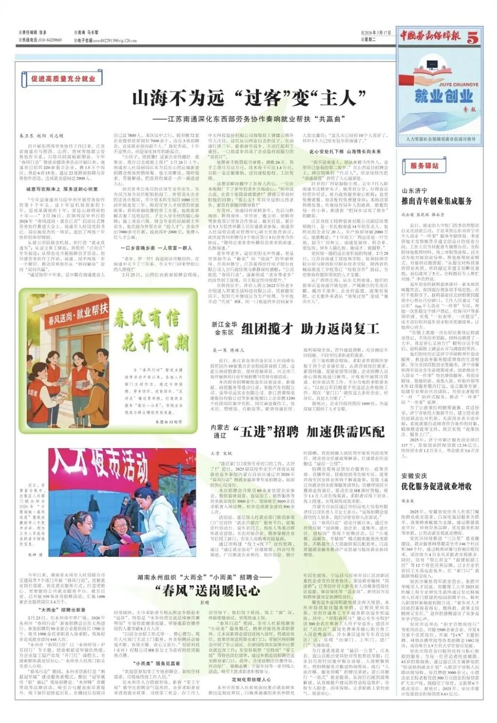 3月17日,《中国劳动保障报》报道,白银人社部门举办2026年“才聚铜城·春风送岗”暨就业援助季人才夜市活动。