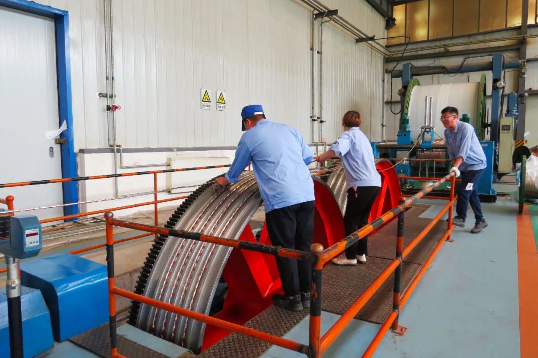 走进白银有色长通电线电缆有限责任公司生产车间,一排排自动化设备正在高速运转,工作人员在机器前进行操作,拉丝、绞线、绝缘、绞合,经过数道工序后,一捆捆电缆制作完成……