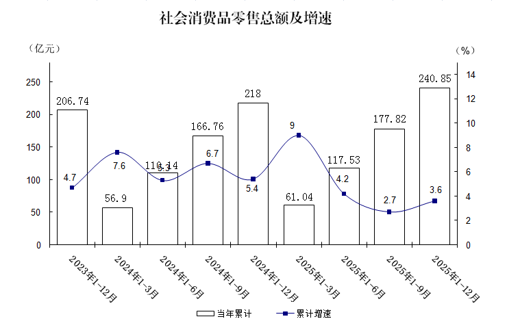 2025年,在市委、市政府的坚强领导下,全市上下以习近平新时代中国特色社会主义思想为指导,全面贯彻党的二十大和二十届历次全会精神,深入落实习近平总书记视察甘肃重要讲话重要指示精神,锚定“工业强市、创新发展,在黄河国家战略中实现新突破”思路,以改革为牵引,主动融入全省“七地一屏一通道”发展战略,全力打造“三地一极”发展格局,因地制宜培育发展新质生产力,全市主要经济指标较快增长,高质量发展成效显著,“十四五”目标圆满收官。 根据地区生产总值统一核算结果,2025年,全市地区生产总值789.23亿元,按不变价格计算,比上年增长6.4%。其中,第一产业增加值137.01亿元,增长5.1%;第二产业增加值298.01亿元,增长8.6%;第三产业增加值354.22亿元,增长5.3%。 一、农业生产形势稳定 全年全市粮食总产量100.96万吨,比上年增加0.72万吨,增长0.7%。其中,夏粮产量18.61万吨,下降2.4%;秋粮产量82.35万吨,增长1.5%。 全年全市蔬菜产量178.15万吨,比上年增长7.2%;园林水果产量19.8万吨,增长1.2%。 全年全市猪牛羊禽肉产量17.49万吨,比上年增长4.7%。年末猪存栏82.42万头,比上年末下降2.0%;牛、羊、家禽存栏分别为16.97万头、252.34万只、737.3万只,分别增长1.5%、2.3%、0.3%。全年猪、牛、羊、家禽出栏分别为124.7万头、11.44万头、363.7万只、529.56万只,比上年分别增长2.0%、6.4%、7%和3.9%。 二、工业生产较快增长 全年全市规模以上工业增加值比上年增长11.7%。从隶属关系看:中央属企业完成增加值增长13.2%,省属企业增长15.1%,县区属企业增长3.6%。从三大门类看:采矿业增加值增长1.5%,制造业增长13.7%,电力、热力、燃气及水生产和供应业增长16.5%。 从主导行业看,四大主导行业累计完成增加值比上年增长13.8%,占全部规上工业增加值的比重为86.9%。其中:有色、电力、煤炭、化工分别增长16.9%、22.7%、1.1%、14.2%。 从产品产量看,截至12月底,累计生产原煤1229.7万吨,同比下降7.7%;水泥293.12万吨,下降14.3%;硫酸205.85万吨,增长10.1%;十种有色金属100万吨,增长4.6%,其中:铜增长8.3%,锌增长0.2%,铝增长3.6%,铅增长17.3%;发电量236.32亿千瓦时,增长5.6%。其中:太阳能发电、风电和火电分别增长54.4%、33.7%和1.4%,水电下降10.9%。 从经济效益看,1-11月,全市规模以上工业企业实现营业收入1138.59亿元,同比增长14.9%;实现利润总额35.76亿元,下降3.5%;每百元营业收入中的成本93.02元,同比增加1.19元。 三、固定资产投资快速增长 全年全市固定资产投资比上年增长13.3%。从投资类型看:项目投资增长22%,房地产开发投资下降37.8%。 截至12月底,全市在库项目(不含房地产)647个,同比增加54个。其中:续建项目303个,同比增加9个;新入库项目344个,同比增加45个。 从三次产业投资看:第一产业投资增长30.8%;第二产业投资增长33.6%,其中工业投资增长33.6%;第三产业投资下降12%。 全年全市民间投资比上年增长3%,扣除房地产开发投资后的民间投资增长18%。 四、消费品市场增势回暖向好 全年全市社会消费品零售总额实现240.85亿元,比上年增长3.6%,比前三季度回升2.5个百分点。部分基本生活类和升级类商品增势较好,限额以上单位饮料类、烟酒类、 五金电料、文化办公用品类零售额分别比上年增长69.1%、70.4%、61%和104.3%。在消费品以旧换新政策带动下,限额以上单位家具类、通讯器材类、家用电器和音像器材类零售额分别增长232.6%、37%、19%,新能源汽车零售额增长37.5%。 全年全市限额以上批零住餐业通过公共网络实现零售额比上年增长35.7%。 五、居民消费价格低位运行 全年全市居民消费价格指数(CPI)比上年下跌0.3%,其中:服务项目价格下跌0.2%,消费品价格下跌0.4%。在构成居民消费品价格的八大类中:其他用品和服务类上涨8.6%,生活用品及服务类上涨0.7%,衣着类上涨0.7%,医疗保健类上涨0.6%,居住类上涨0.2%,交通通信类下跌2.9%,食品烟酒类下跌1.3%,教育文化和娱乐类下跌0.3%。 六、金融信贷运行稳健 年末全市金融机构本外币各项存款余额1421.1亿元,比上年末增长6.7%。其中:住户存款余额1095.38亿元,增长9.2%;非金融企业存款余额147.76亿元,下降10.9%。金融机构本外币各项贷款余额1117.34亿元,增长9.1%。其中:住户贷款余额402.22亿元,增长7.4%;非金融企业及机关团体贷款余额713.92亿元,增长9.9%。 七、财政收支平稳运行 全年全市一般公共预算收入完成42.77亿元,同比增长6.6%。其中:市级收入增长13.2%,县区收入增长3.9%。一般公共预算支出完成220.24亿元,下降1.8%。与民生相关的十一类支出完成181.25亿元,下降2.1%,占一般公共预算支出的比重为82.3%。 八、城乡收入稳步增长 全年全市城镇居民人均可支配收入完成44040元,比上年增加2454元,增长5.9%。农村居民人均可支配收入完成15700元,比上年增加917元,增长6.2%。城乡居民人均可支配收入比值为2.81,与上年同期持平。 附注: (1)按照我国地区生产总值统一核算和数据发布制度规定,地区生产总值核算包括初步核算和最终核实两个步骤。经最终核实,2024年白银市地区生产总值修订为743.49亿元。按不变价格计算,比上年增长5.5%。 (2)部分数据因四舍五入,存在总计与分项合计不等的情况。 数据资料下载:2025年白银市经济运行情况.docx |