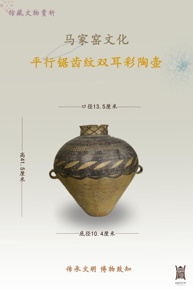 马家窑文化 平行锯齿纹双耳彩陶壶