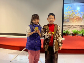 老师讲得精彩,孩子们听得认真,时不时还有互动,答对问题的孩子都有小小的奖励。通过PPT,孩子们了解了仰韶文化时期的船型彩陶壶寓意——酒像船下的水一样饮之不尽;大汶口文化时期的猪形陶鬶(guī)反映出新石器时代先民将实用性与艺术性完美融合;龙山文化时期的黑陶罍(léi)更是将盛、斟、饮功能融于一身;马家窑文化时期的十字纹双联彩陶罐的独特造型。