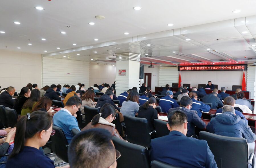 11月27日,白银高新区召开学习贯彻党的二十届四中全会精神专题宣讲会。白银高新区党工委委员、管委会副主任刘为哲主持会议,白银高新区党工委委员、管委会副主任张庆国作专题辅导报告。