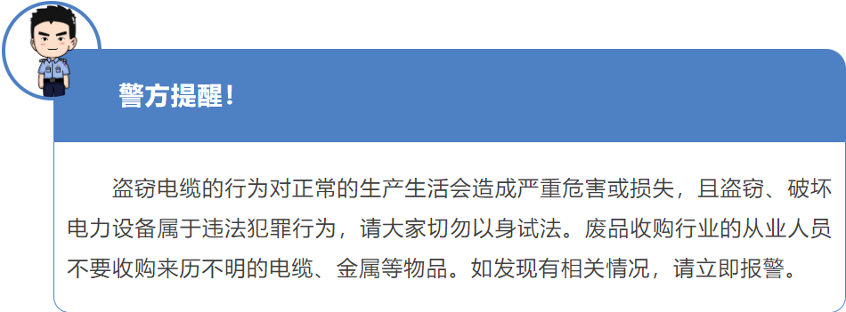 “君子爱财,取之有道”,却偏偏有人妄想挣快钱,不惜以身试法,取之以“盗”,打起了工地电缆线的主意,殊不知,来钱快、被抓更快!近日,白银市公安局铜城分局综合侦查大队成功破获一起盗窃电缆线案,抓获犯罪嫌疑人2名,有力维护了辖区的治安稳定和企业的财产安全。