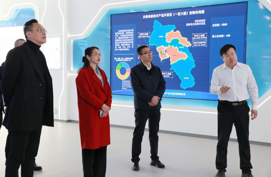 1月16日上午,中共二十大代表、全国劳动模范、广西华控集团党总支书记包菊辉率领考察团来白银高新区考察座谈。考察团一行参观了白银高新区展厅,通过实地察看、听取讲解等方式,详细了解高新区产业布局、发展规划及重点产业培育等情况。白银高新区党工委书记、管委会主任刘龙陪同考察。