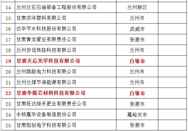 近日,甘肃省市场监督管理局发布通知,公布了2023年度认定的25户甘肃省知识产权优势企业名单。白银高新区甘肃睿思科新材料有限公司、甘肃天后光学科技有限公司、甘肃华隆芯材料科技有限公司3家企业被确定为新一批甘肃省知识产权优势企业。