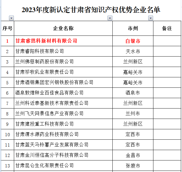 附件:2023年拟认定甘肃省知识产权优势企业名单