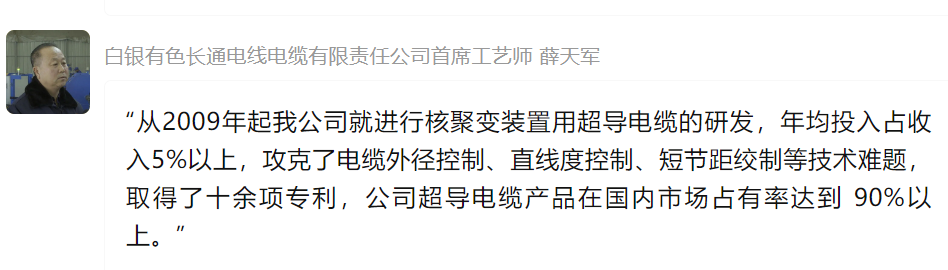 坚持培育科技之树,终能结出科技之果。今年,长通公司作为唯一生产商,完成了31公里聚变堆主机关键系统综合研究设施(CFART) 项目TF导体电缆和导体性能研究平台超导电缆的产业化生产。