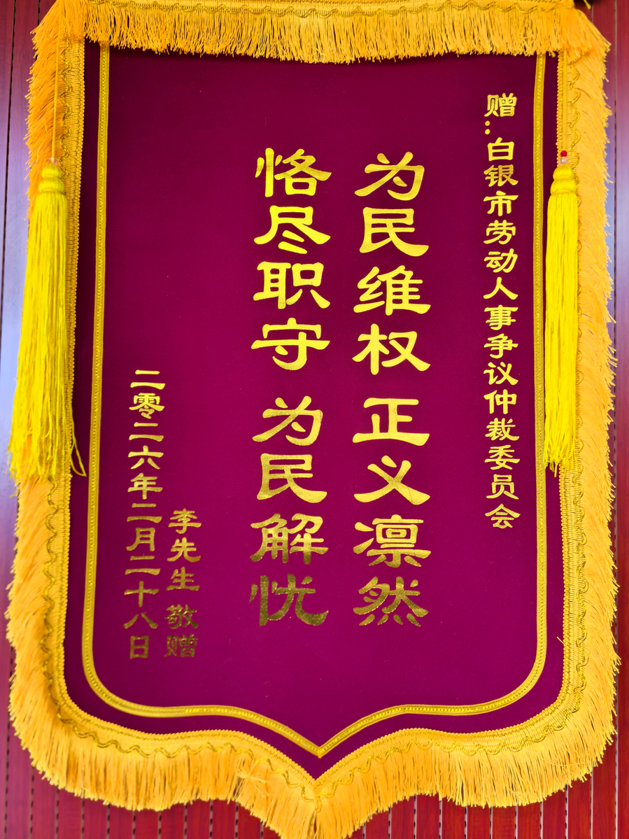 小小锦旗,承载着群众的认可与信任。白银市人社局仲裁院将持续聚焦工伤维权、劳务派遣、欠薪纠纷等重点领域,不断优化调解仲裁流程,强化跨区域协同处置,以更高效、更便民、更暖心的服务,切实化解群众急难愁盼,全力构建和谐稳定的劳动关系。