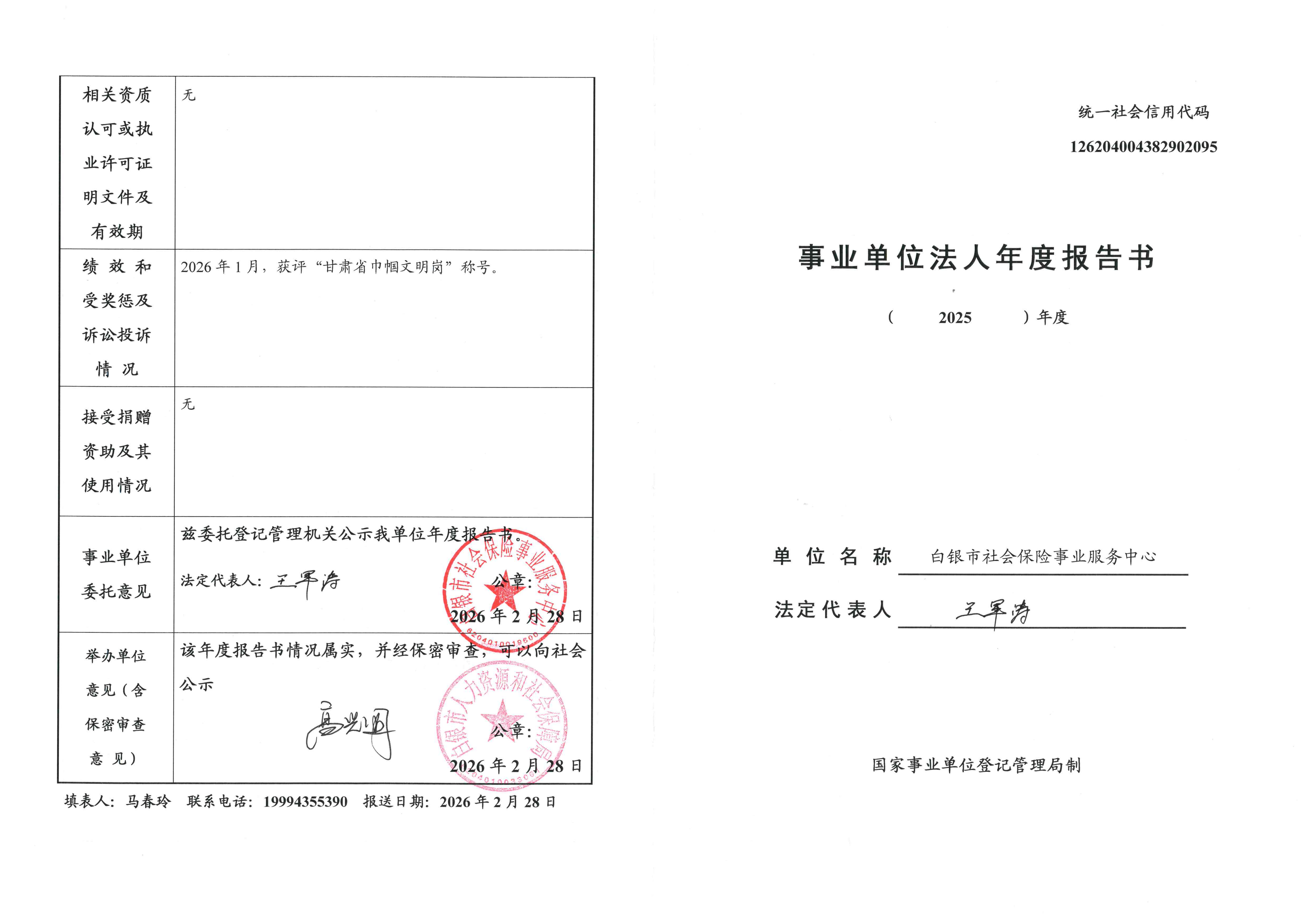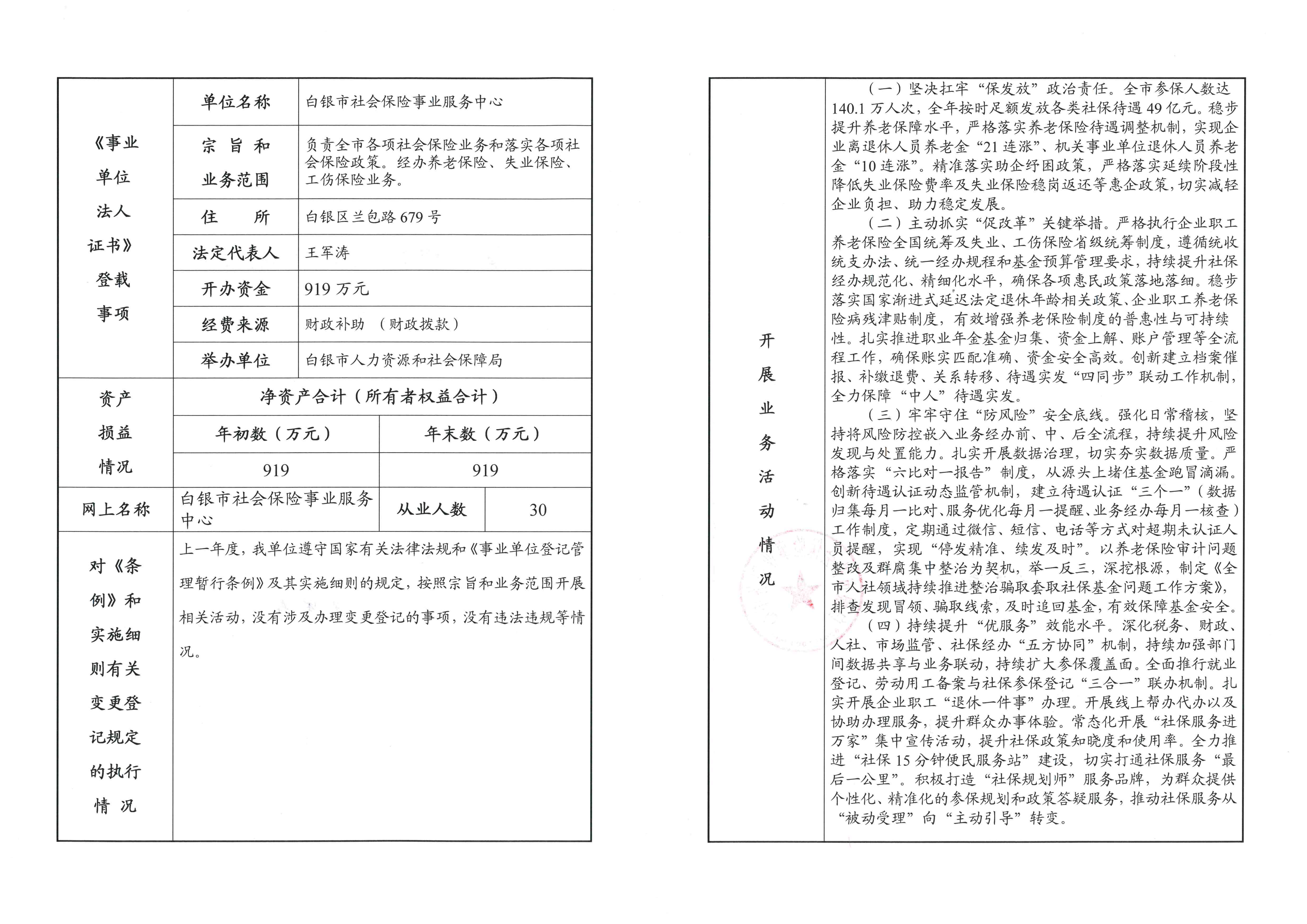 白银市社会保险事业服务中心事业单位法人年度报告书(2025年度)
