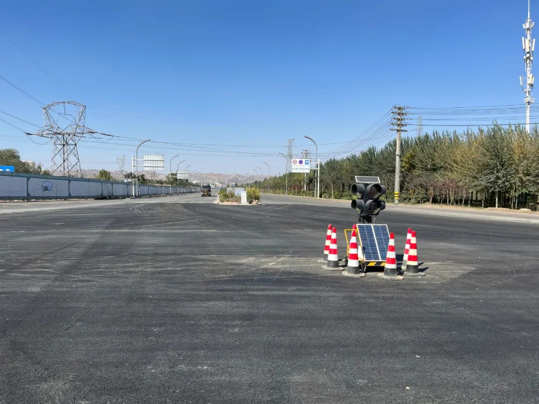 黝黑明亮的沥青路面宽阔平坦,熠熠生辉的彩旗迎风飘扬。10月1日,地下综合管廊二期项目G109国道郝家川段改道封闭施工圆满完成,恢复畅通。