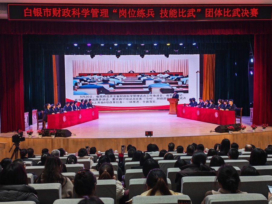 12月19日下午,白银市财政科学管理“岗位练兵、技能比武”团体决赛在市艺术中学举办。市委常委、常务副市长葛永宏,省财政厅相关处室领导出席活动。本次活动是全市财政系统贯彻党的二十大及历次全会精神、深化财税体制改革,落实市委、市政府财政工作部署的重要举措。活动分全员练兵、个人决赛、团体决赛三个阶段有序推进,全市财政系统129名干部参与个人比武,团体决赛6支代表队同台竞技,全面展现了财政干部扎实的专业素养与昂扬向上的精神风貌。