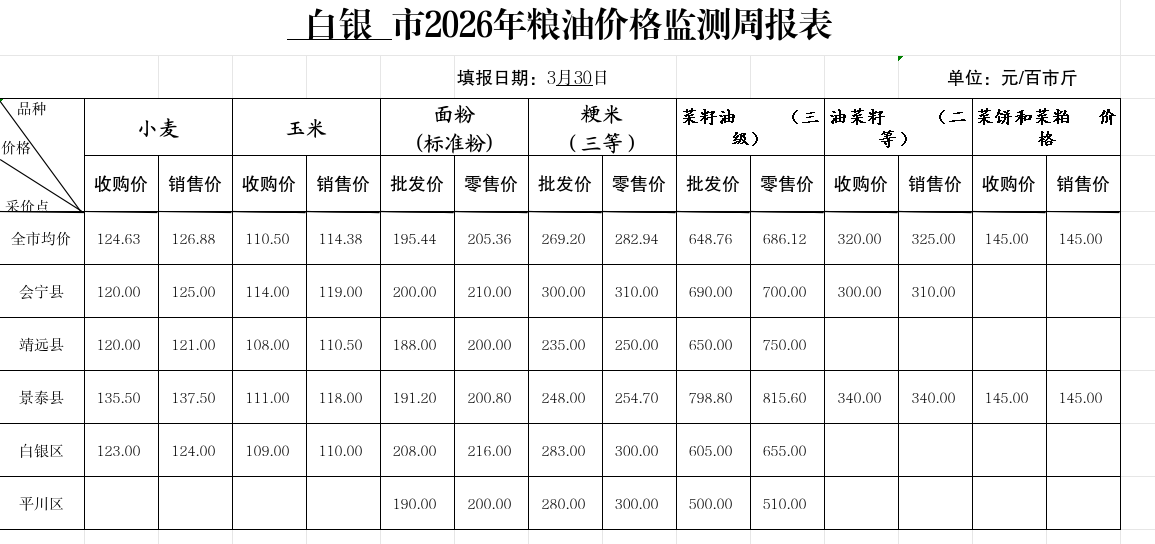 白银市2026年粮油价格监测月报表第3期