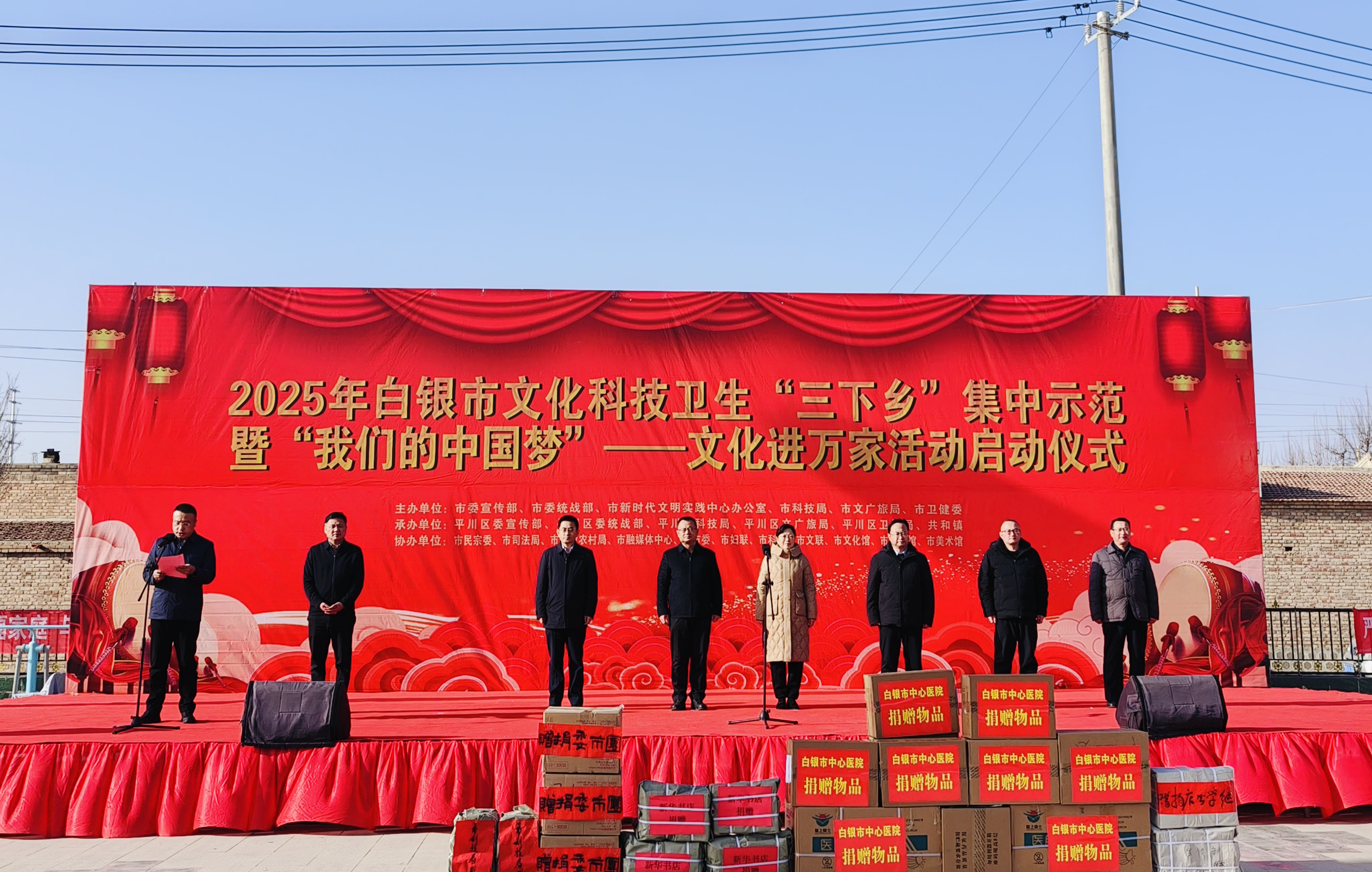 1月11日,2025年白银市文化科技卫生“三下乡”集中示范暨“我们的中国梦”——文化进万家活动在平川区共和镇兄弟村启动。市委副书记、市委统战部部长张麟,市委常委、市委宣传部部长朱利民出席仪式。