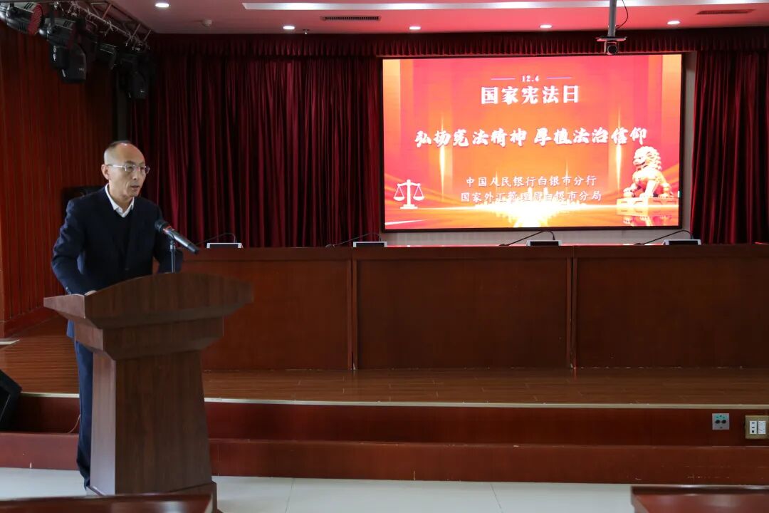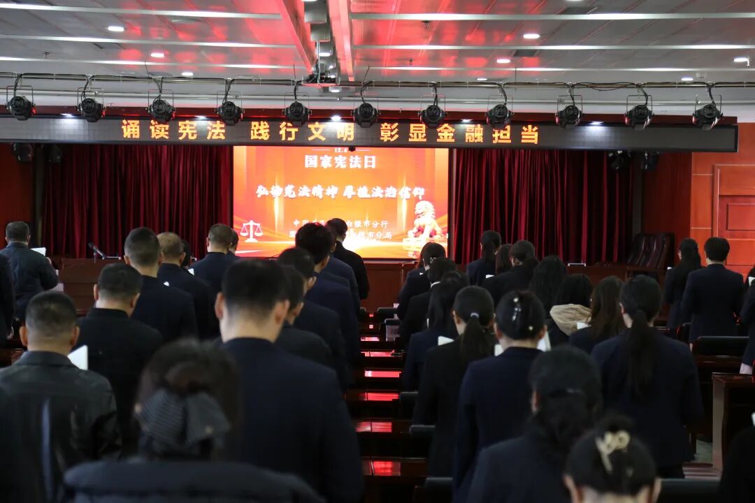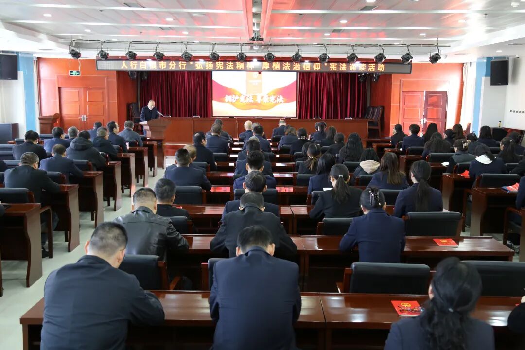 中国人民银行白银市分行举办“弘扬宪法精神 厚植法治信仰”宪法诵读活动。活动中,全体干部职工齐唱国歌、观看宪法宣传片并集体诵读宪法条文,在庄重仪式中深刻体悟宪法的根本法地位与权威。现场诵读声整齐洪亮,伴随《歌唱祖国》的合唱,进一步增强了干部职工的法治信仰与履职使命感。