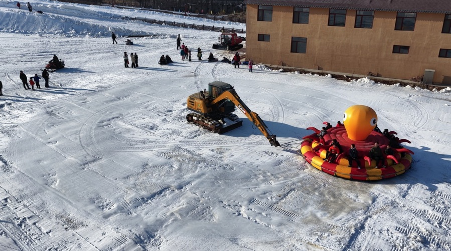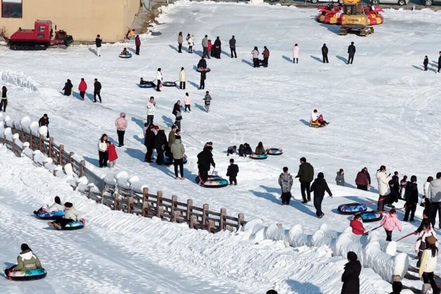 年轻人组队挑战雪地摩托,雪圈滑道上的飞驰、冰上自行车的欢乐,让整个乐园变成“冬日童话镇”。
