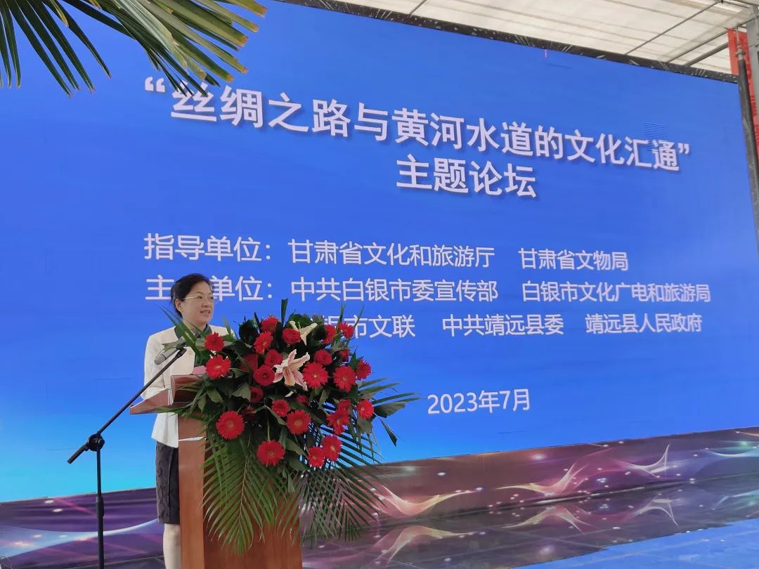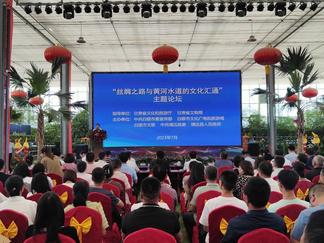 7月19日,由中共白银市委宣传部、白银市文化广电和旅游局、白银市文联、中共靖远县委、靖远县人民政府主办,靖远县委宣传部、靖远县文旅局、靖远县文联、靖远县融媒体中心承办的“丝绸之路与黄河水道的文化汇通”主题论坛在靖远东湾高效农业示范园成功举办。市委常委、宣传部部长朱利民主持论坛,市政府副市长李敏娜致辞,省文旅厅公共文化处处长陈永红参加会议,省文物局办公室副主任左五元作了发言。