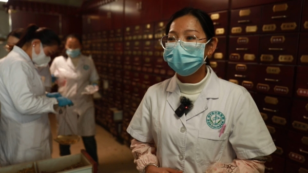 会宁县中医医院中药房药剂师 杨晶:我们每天能取260张左右处方,九个人全员在岗,确保及时将药品发放到患者手中。