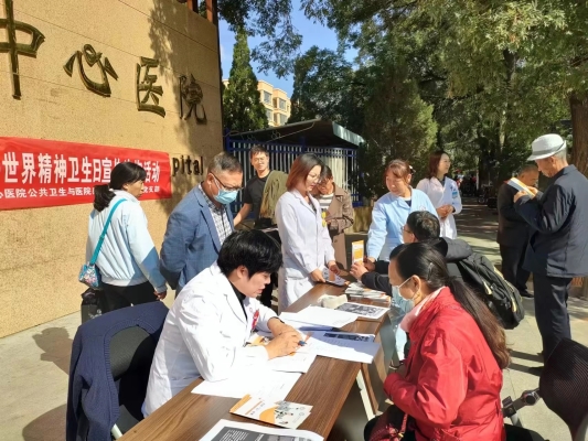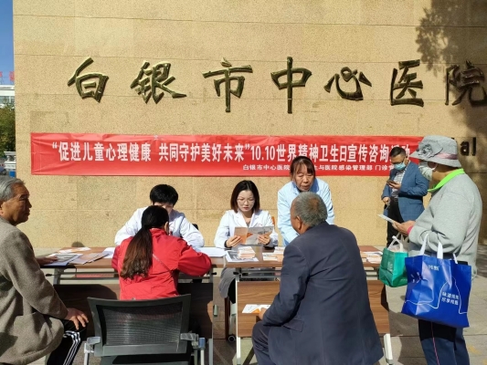 10月10日,中心医院公共卫生与医院感染管理部、门诊党支部、心理卫生与睡眠门诊共同开展主题宣传活动,为广大居民讲解心理健康知识,发放宣传手册,并就少年儿童心理健康教育进行现场宣教。