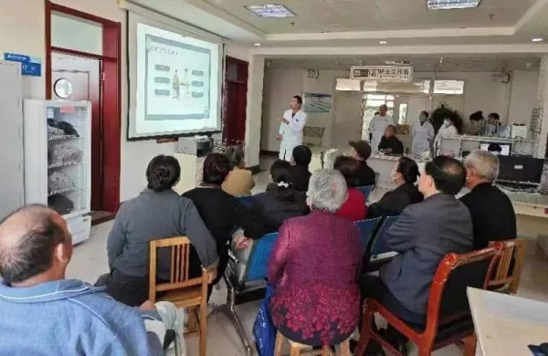 在医院,脑病科等临床科室为住院患者及陪员家属开展高血压病等相关知识的健康宣教,脑病科主任曾朝科定期持续性为患者开展相关疾病的预防与治疗知识宣教,得到了患者的一致好评。