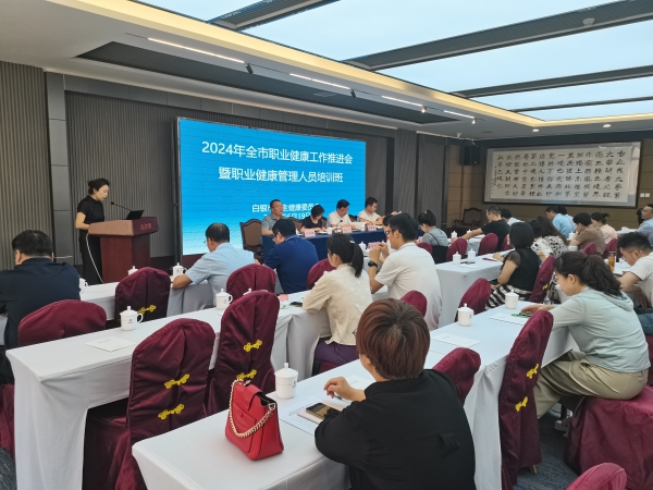 为深入推进落实国家和全省职业健康工作会议精神要求,推进职业健康工作再上新台阶,6月19日,白银市卫生健康委组织召开全市职业健康工作推进会暨职业健康管理人员培训会,委党组成员、副主任张振飞出席会议并讲话,市疾控中心主任马菊红主持会议。