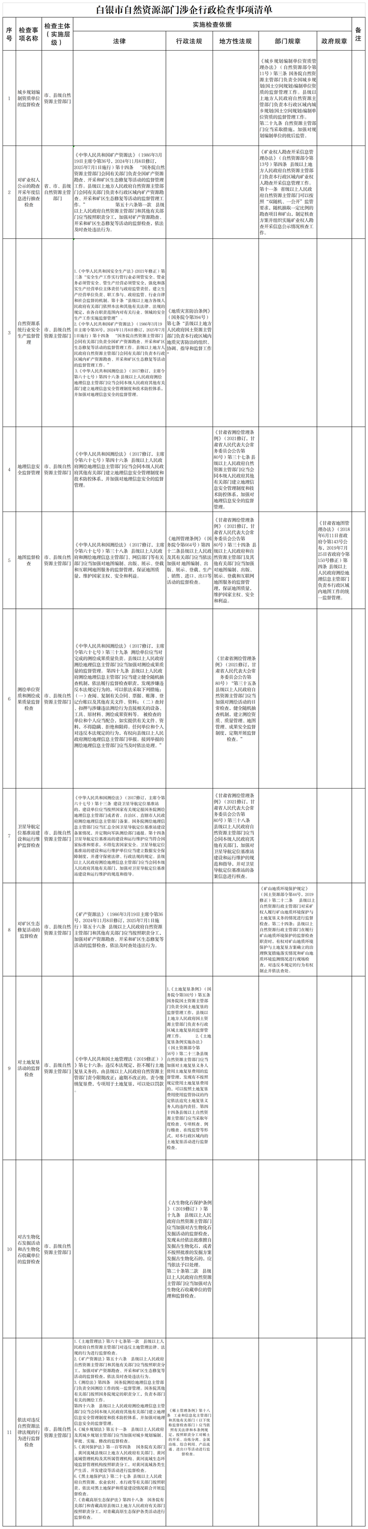 《白银市自然资源部门涉企行政检查事项清单》公布