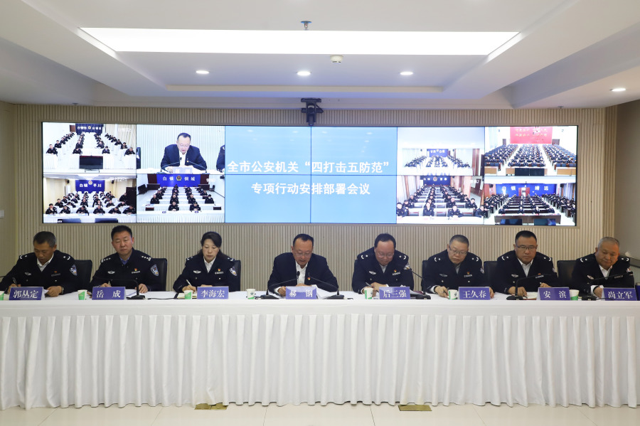 郝钢强调,要把握形势任务,切实增强思想自觉、行动自觉。全市公安机关务必要保持当前安全稳定的良好势头,以“四打击五防范”专项行动为牵引,彰显主题教育成果,着力解决人民群众最关切最关注最关心的问题,有效维护全市社会大局持续稳定。要聚焦工作重点,迅速发起凌厉攻势、强大声势。严厉打击涉黄赌毒、盗抢骗和食药环领域、经济领域等违法犯罪行为,坚决防范严重暴力犯罪和恶性命案、侵害弱势群体权益违法犯罪、重特大公共安全和道路交通事故和公共安全领域风险隐患等,不断增强群众的获得感、幸福感、安全感。要加强组织领导,确保行动扎实推进、取得实效。坚持守土有责、守土尽责,加强组织指挥,高标准定位、高起点谋划、高质量推进,确保专项行动实现预期目标。市县公安机关要上下联动,一体推进,牢固树立“一盘棋”思想,形成打击合力,全力攻坚。要将“四打击五防范”专项行动作为督察重点,全过程、全方位、全环节督导检查,以严的督导确保实的成效,加强宣传报道,形成浓厚的严打整治氛围。同时,要抓细爱警暖警惠警措施,加强队伍教育管理,组织开展保密教育和安全检查,严防发生“枪车酒赌毒密网”等问题。
