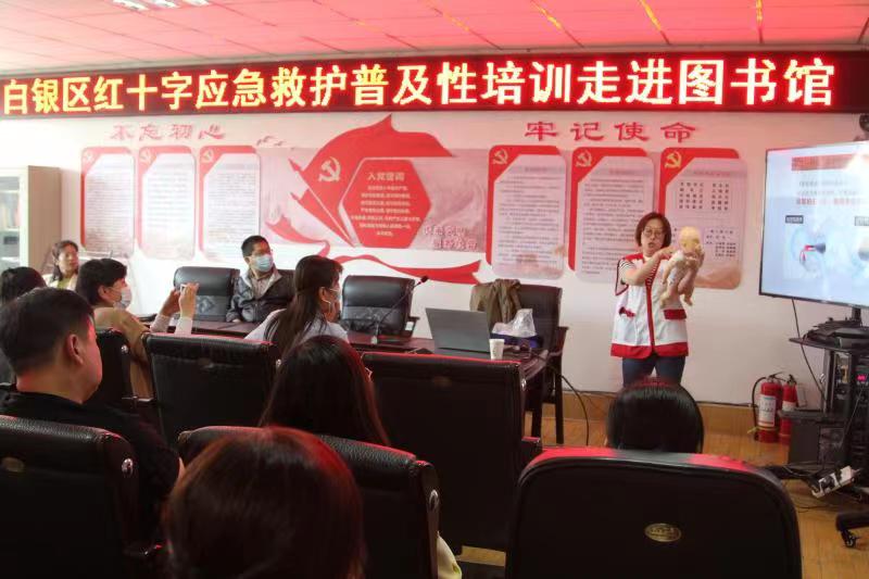 为进一步普及应急救护知识技能,增强群众应对突发事件时应急救援和自救互救能力。5月16日下午,白银区红十字会走进市图书馆开展应急救护普及性培训。中国红十字会总会救护培训师曹乃文为市图书馆50余名职工上了一堂生动的应急救护课。