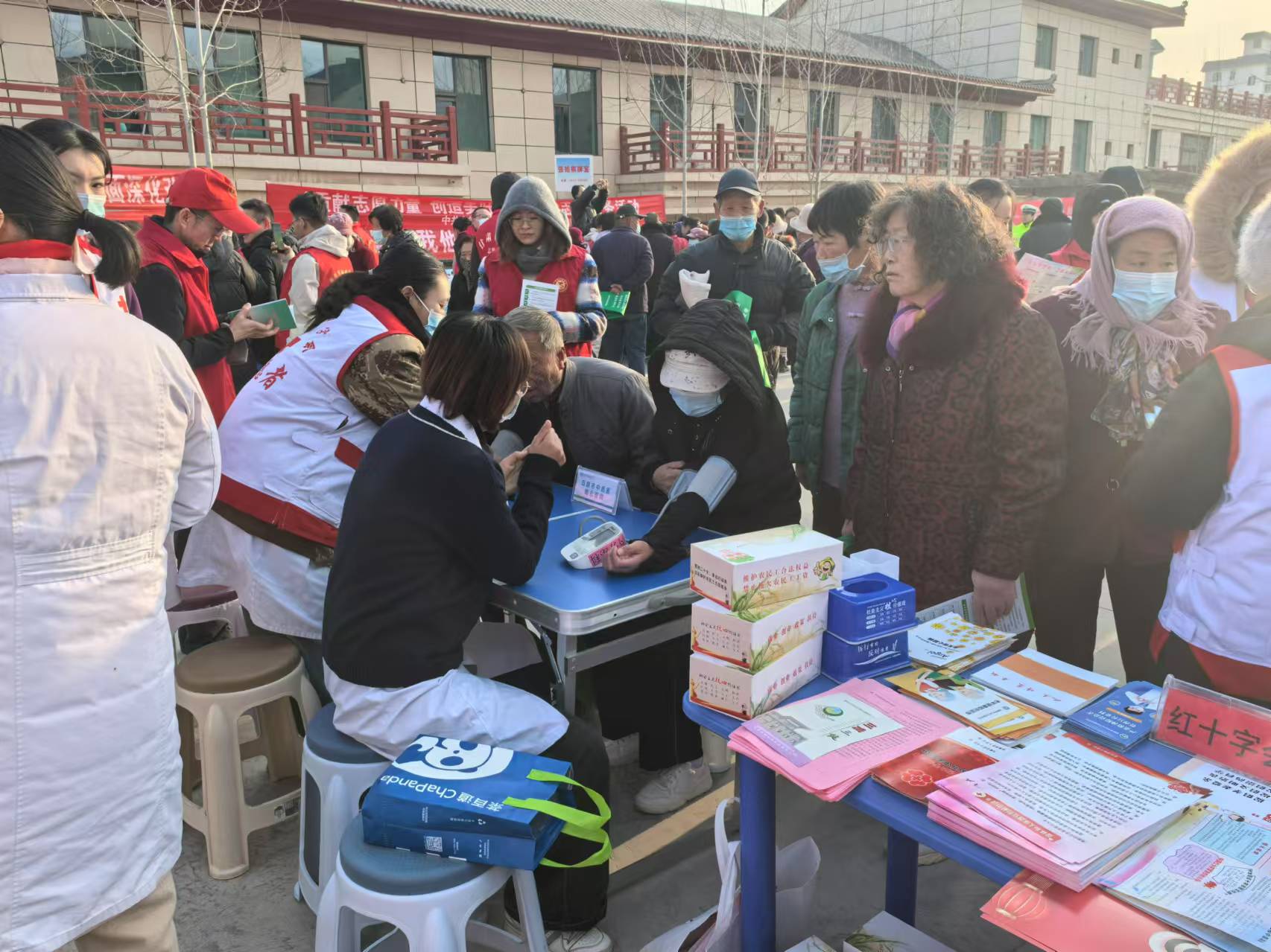活动现场,志愿者为群众提供了丰富且具有针对性的志愿服务项目。通过摆放展板、发放手册、开展应急救护培训等方式普及应急救护技能和健康知识。红十字救护培训师为群众讲解演示心肺复苏、气道异物梗阻救治等急救技能,以便居民直观感受和掌握急救技能。与此同时,中西医结合医院红十字志愿者在现场开展义诊,为群众测量血压,普及高血压、慢性病、传染病等预防保健知识。