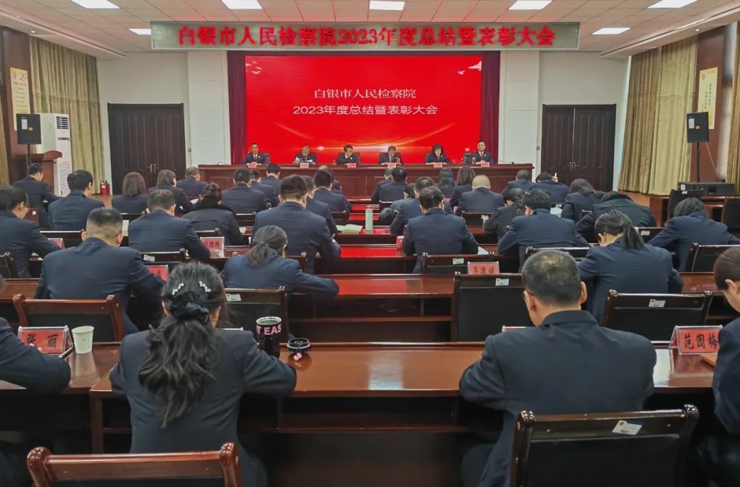 近日,白银市人民检察院召开2023年度总结暨表彰大会,回顾总结2023年工作,谋篇布局2024年工作,并对先进集体和先进个人进行表彰。市检察院党组书记、检察长马军主持会议并讲话,院党组成员、全体检察人员参加会议。