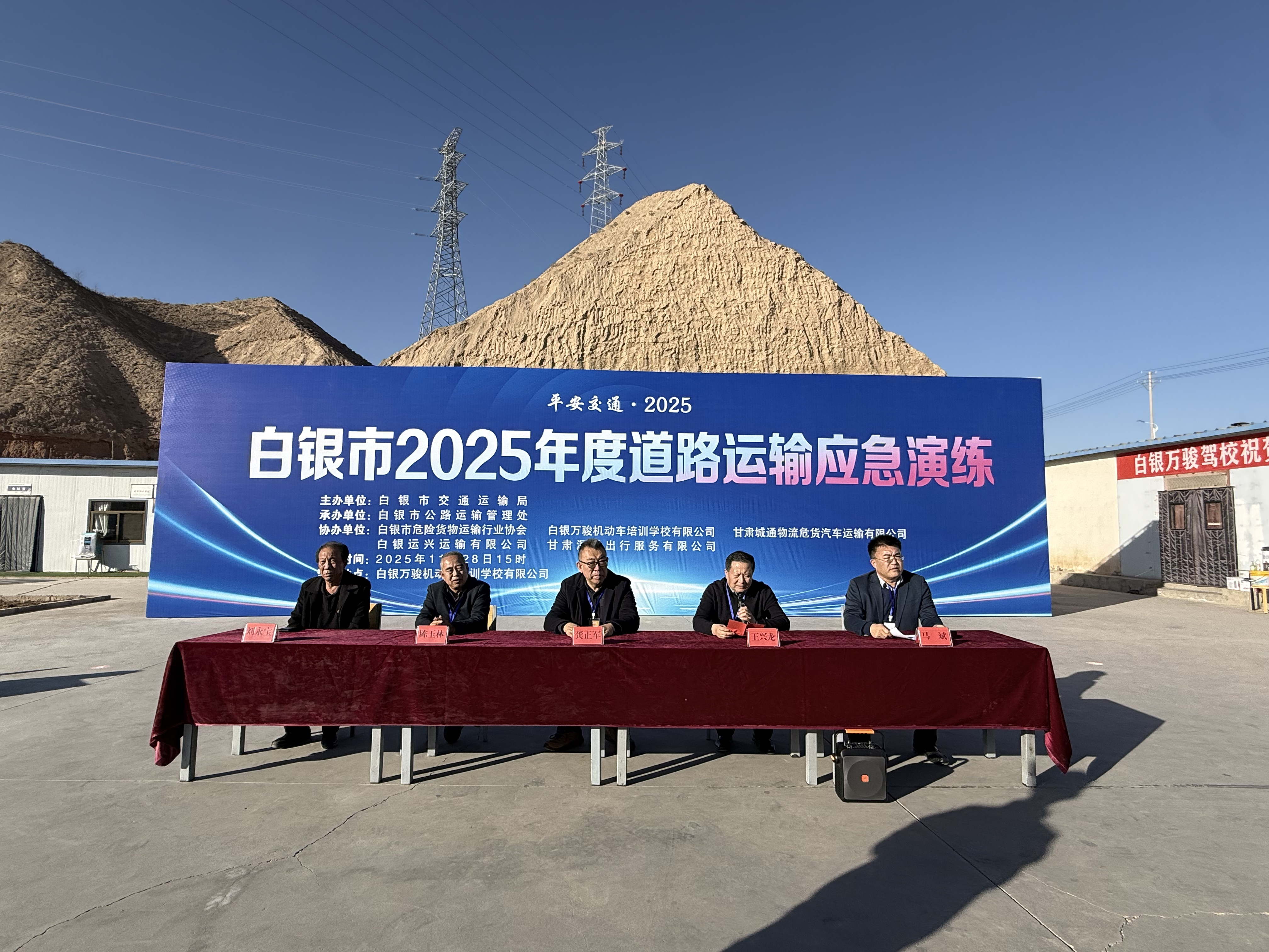 为认真贯彻落实中央、国务院和省、市关于安全生产工作的决策部署,深入推进安全生产治本攻坚三年行动,切实提升全市道路运输安全应急处置能力,保障人民群众生命财产安全。11月28日,白银市2025年度道路运输应急演练成功举办。市交通运输局、市运管处、各县区运管所、白银市危险货物运输行业协会、甘肃城通物流危货汽车运输有限公司、白银运兴运输有限公司、甘肃深适出行服务有限公司、白银万骏机动车驾驶培训学校等100余人观摩了演练。