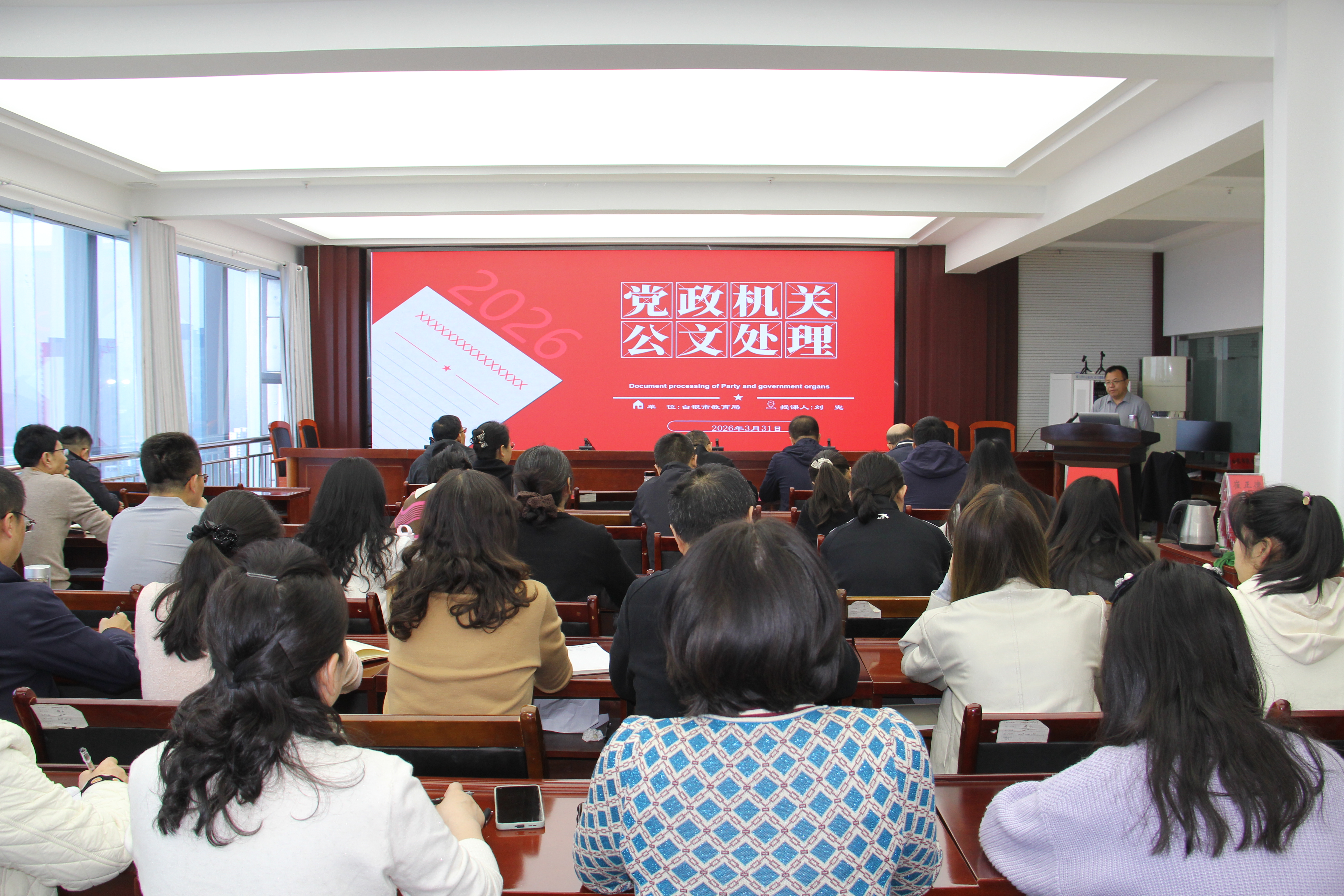本次培训紧扣《党政机关公文处理工作条例》核心要求,坚持问题导向与实操导向相结合,结合教育系统工作特点,围绕公文处理流程、行文规则、常用公文写作规范、易错问题等内容,通过“理论讲解+案例剖析”的方式,将规范要求讲透彻、写作技巧讲扎实、易错问题讲明白,有效提升了培训的针对性和实效性。 全体干部要以此次培训为契机,坚持党建引领,牢固树立和践行正确政绩观,把牢公文政治关;要强化学习、勤于实践、严守规范,持续提升以文辅政能力;要坚持学用结合,把培训成果转化为工作实效,持续推动公文处理规范化、制度化、精细化,为全市教育事业高质量发展提供坚实政务保障。 局机关各科室、局属各事业单位负责人及相关工作人员参加培训。