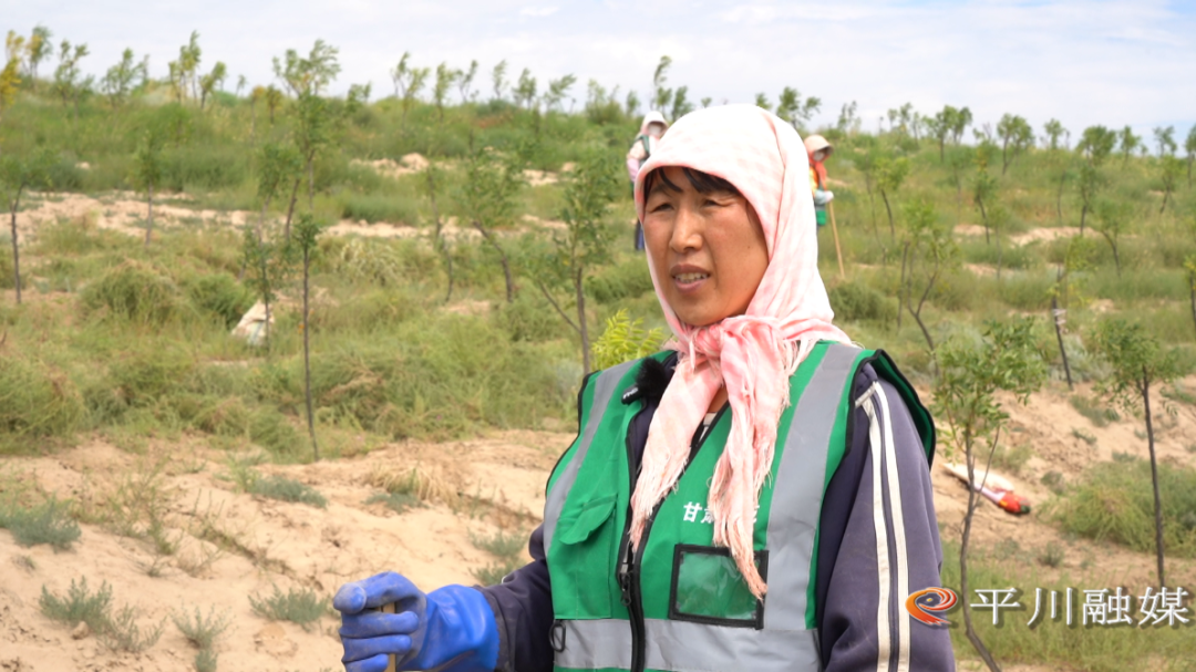护林员金建翠说:“我们一天干十多个小时,给小树浇水,把周围的杂草除干净,把小树维护好,让它成长。”