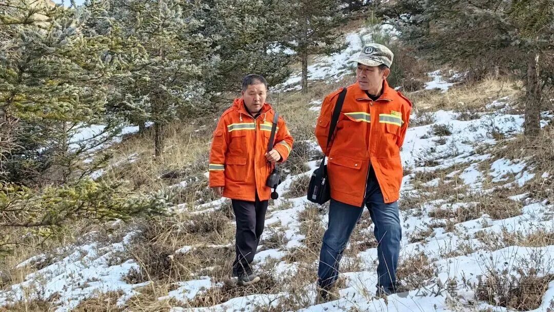 库房里的器材时刻待命,山林间的巡护脚步也从未停歇。寿鹿山的林间小道上,护林员们身着醒目的橘红色工作服,肩挎巡山包,手持望远镜,随着冷风穿梭在崎岖山路间,对林区火灾隐患进行拉网式排查。寿鹿山自然保护区管理站 孙得福
