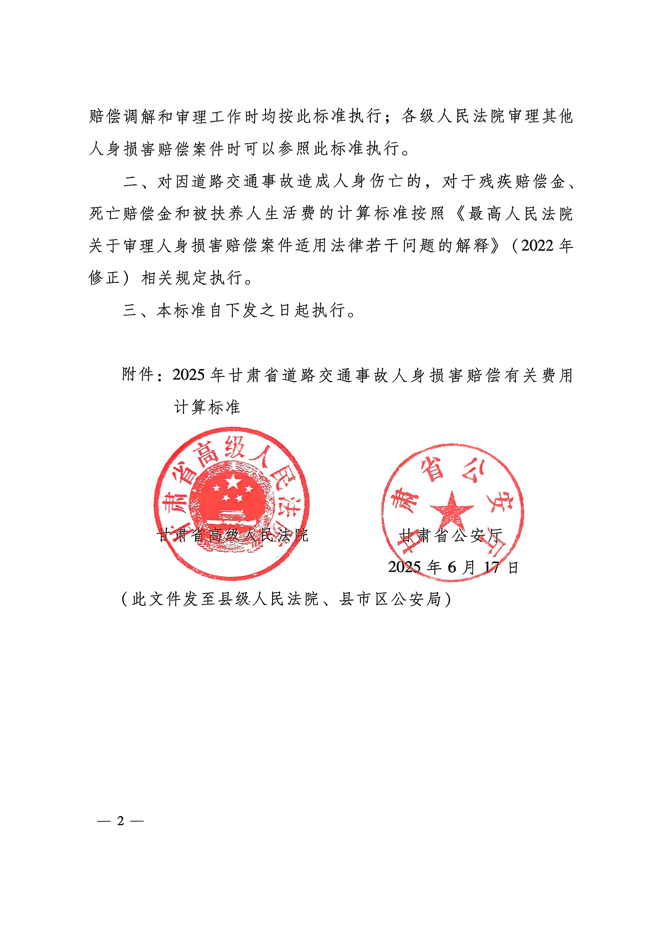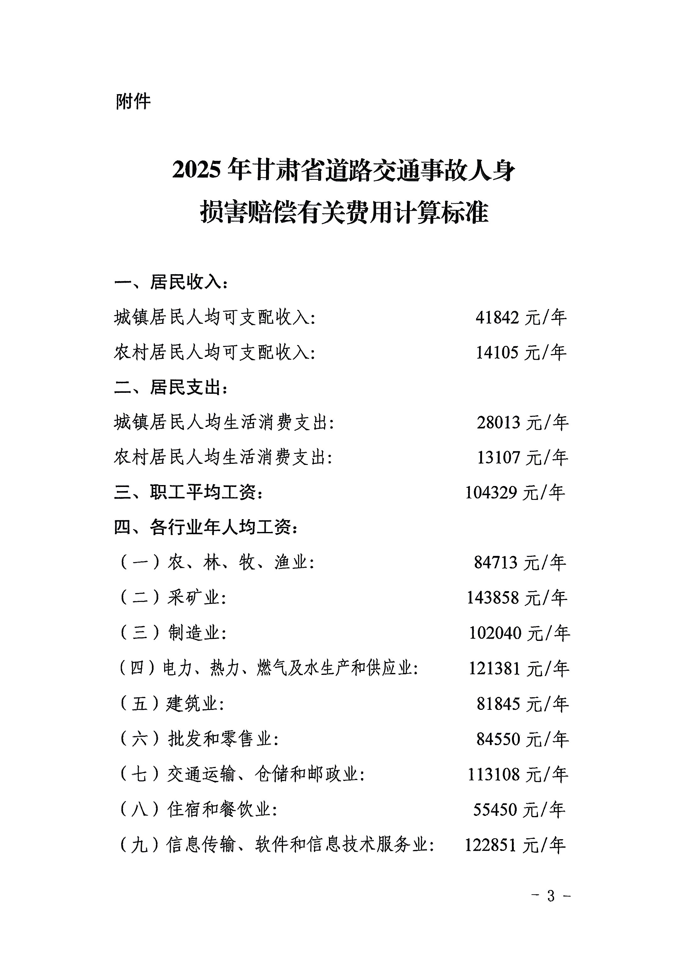 关于印发2025年甘肃省道路交通事故人身损害赔偿有关费用计算标准的通知.pdf
