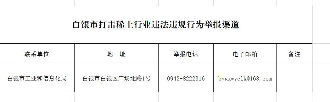 白银市打击稀土行业违法违规行为举报渠道