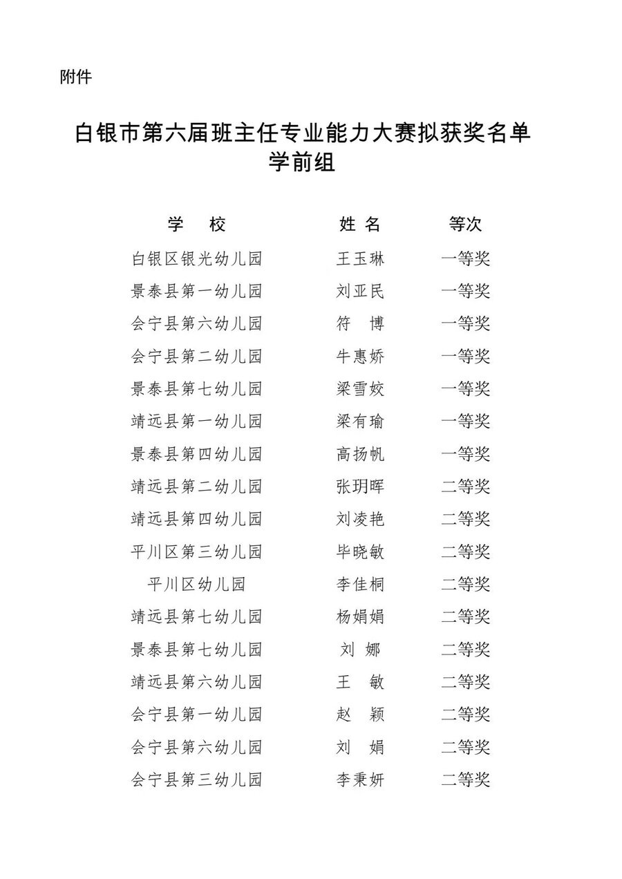 附件:白银市第六届班主任专业能力大赛拟获奖名单