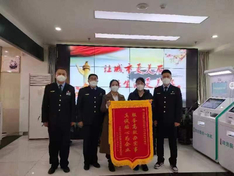 11月14日下午,甘肃众友健康医药连锁白银有限公司企业负责人为白银区市场监督管理局行政审批窗口送来“服务高效办实事、真诚贴心为企业”的锦旗,以表达企业对市场监管部门帮办服务,解决企业实际困难的感激之情。