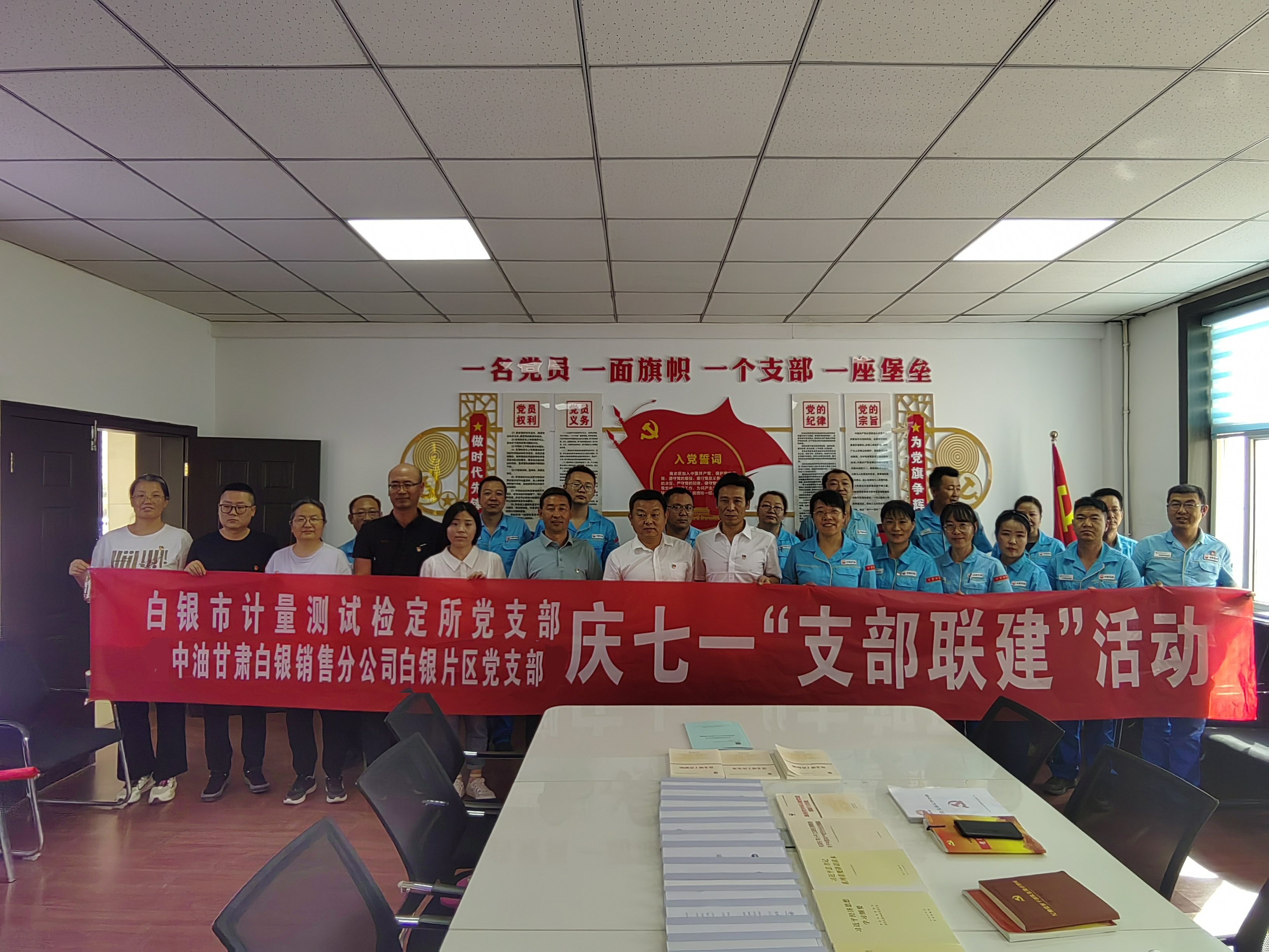 为庆祝中国共产党成立102周年,深入学习习近平新时代中国特色社会主义思想,全面贯彻党的二十大精神,强化党支部凝聚力、战斗力,6月26日,白银市计量测试检定所党支部联合中石油甘肃白银销售分公司白银片区党支部开展“庆七一”支部联建主题党日活动。