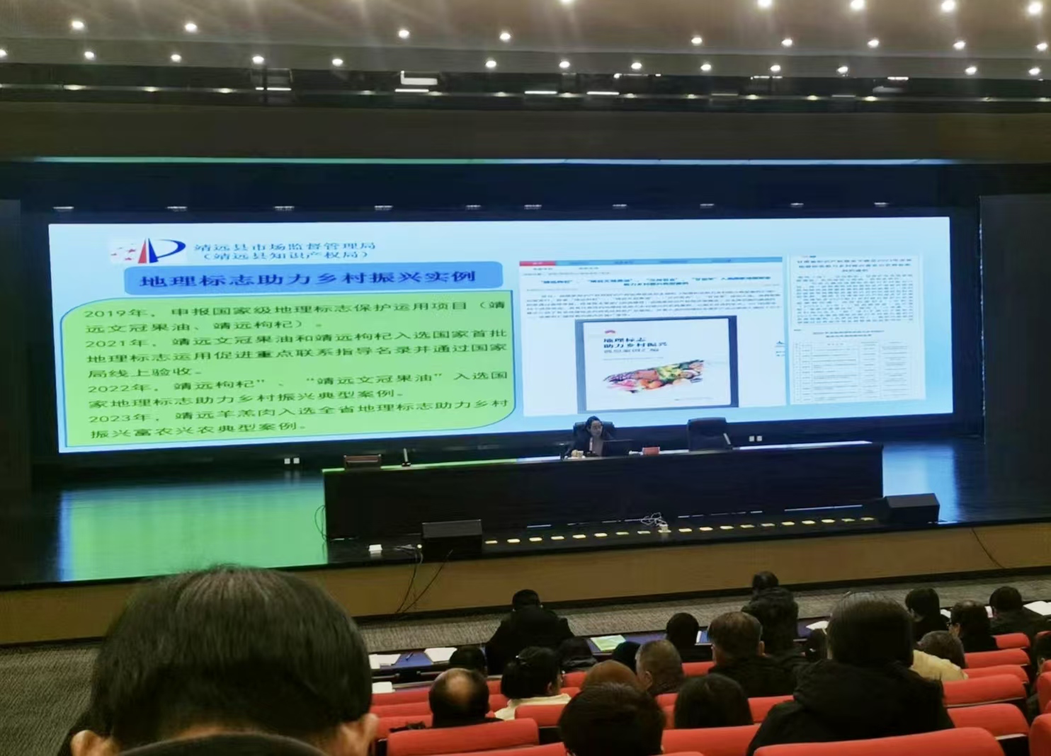 培训介绍了靖远县现有地理标志产品、证明商标发展情况以及做好地理标志工作对促进县域特色经济发展的重要作用;并结合地理标志相关知识及典型案例,从地理标志概念、意义及总体情况、地理标志的三种保护形态、专用标志申请、地理标志保护及专用标志使用的日常监管、地理标志专用标志使用要求、地理标志不规范使用行为等六个方面详细讲解了地理标志保护与运用相关知识。
